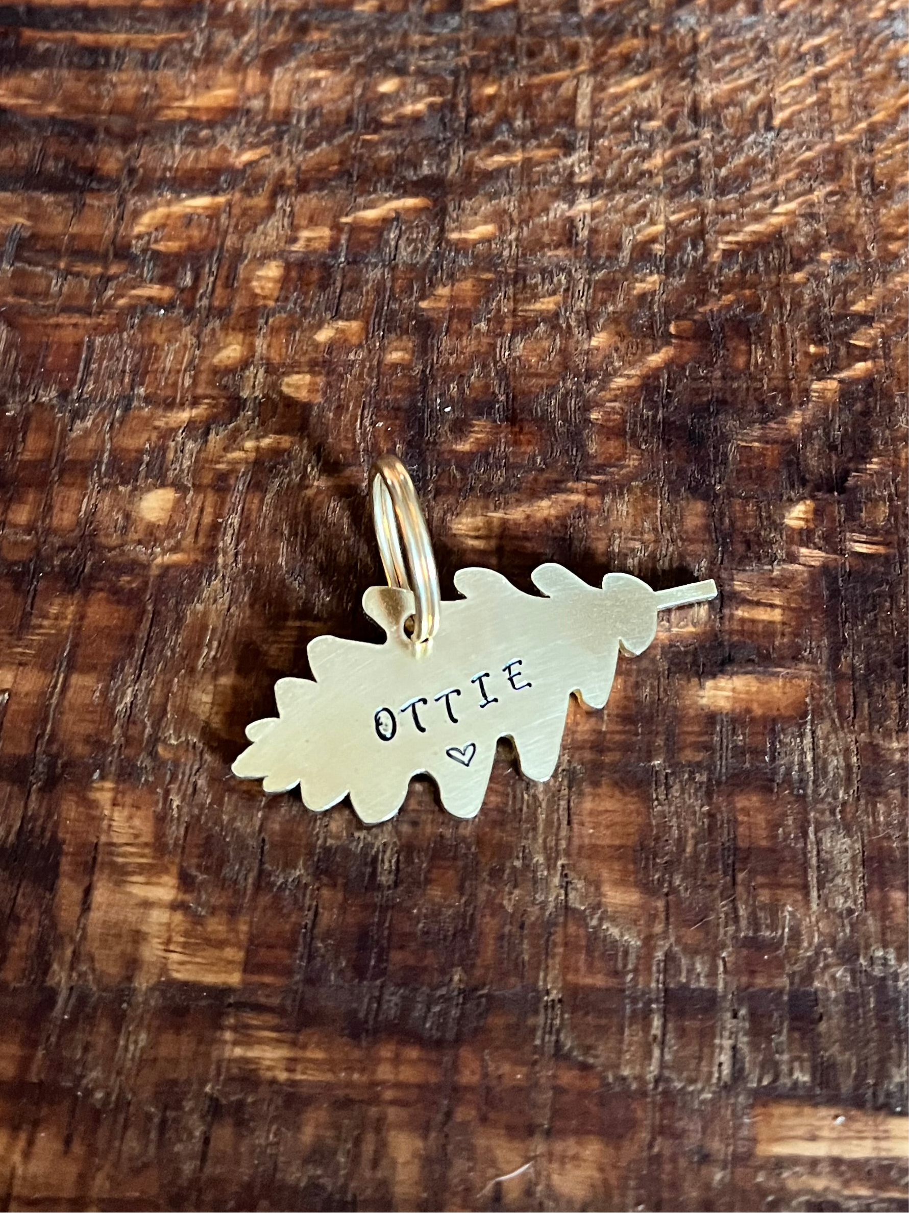Each design is individually stamped by hand, one letter at a time, using traditional tools. This means no two pieces are ever exactly alike, each tag is truly one of a kind.