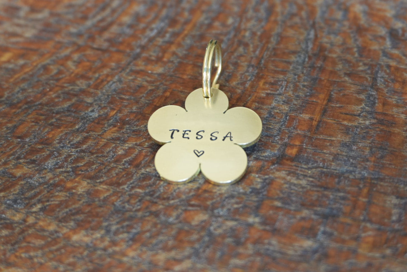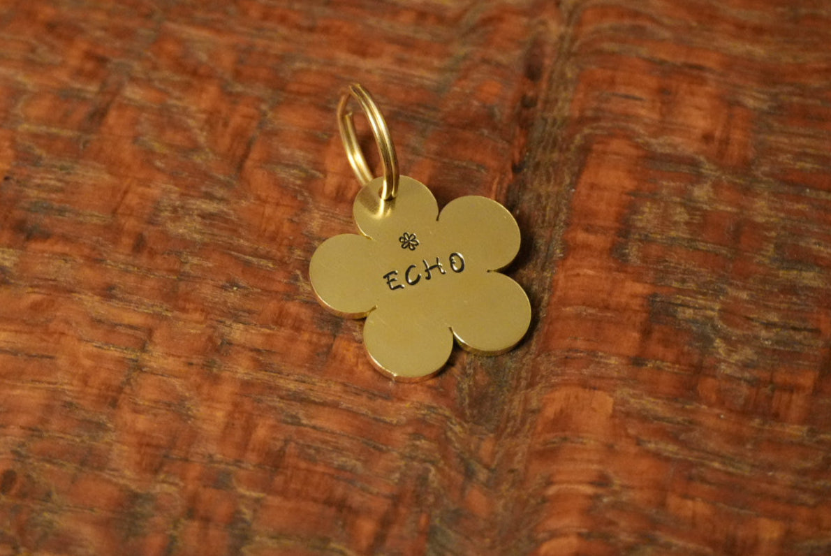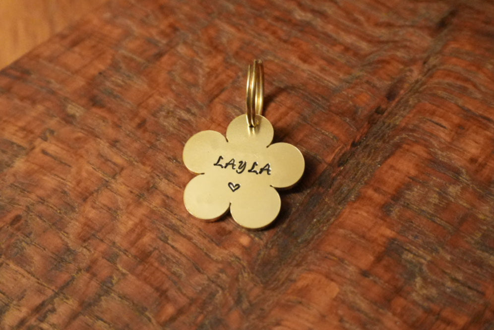 Each design is individually stamped by hand, one letter at a time, using traditional tools. This means no two pieces are ever exactly alike, each tag is truly one of a kind.