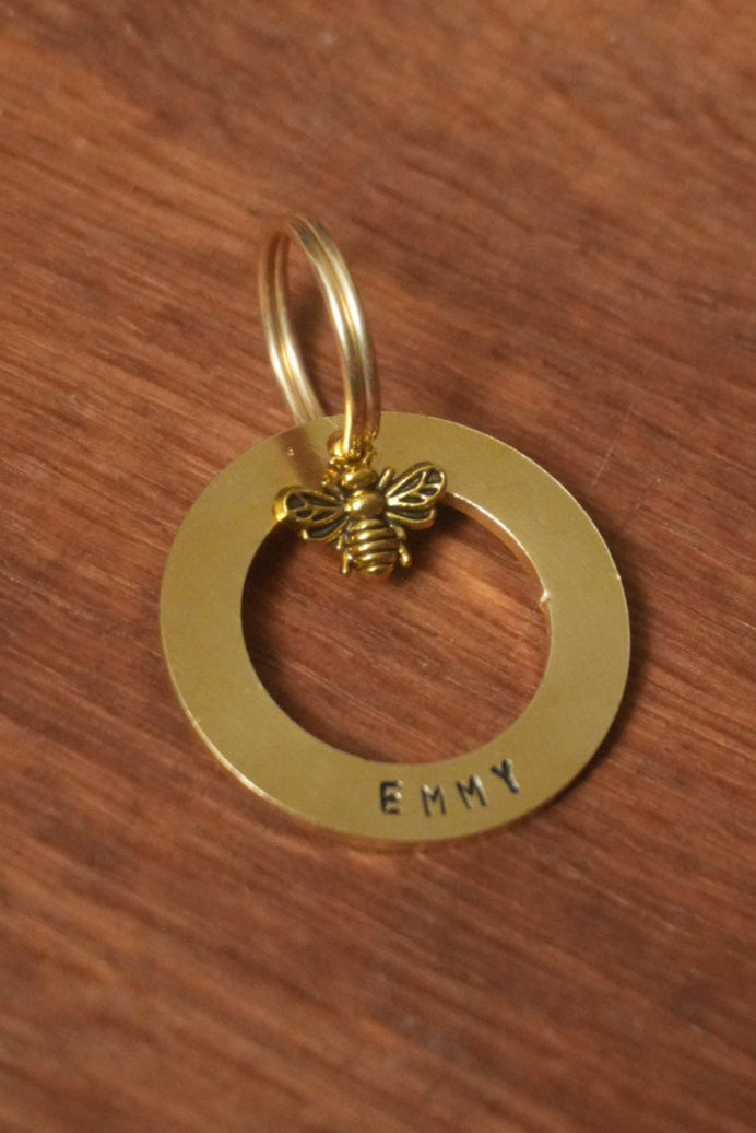 Each design is individually stamped by hand, one letter at a time, using traditional tools. This means no two pieces are ever exactly alike, each tag is truly one of a kind.