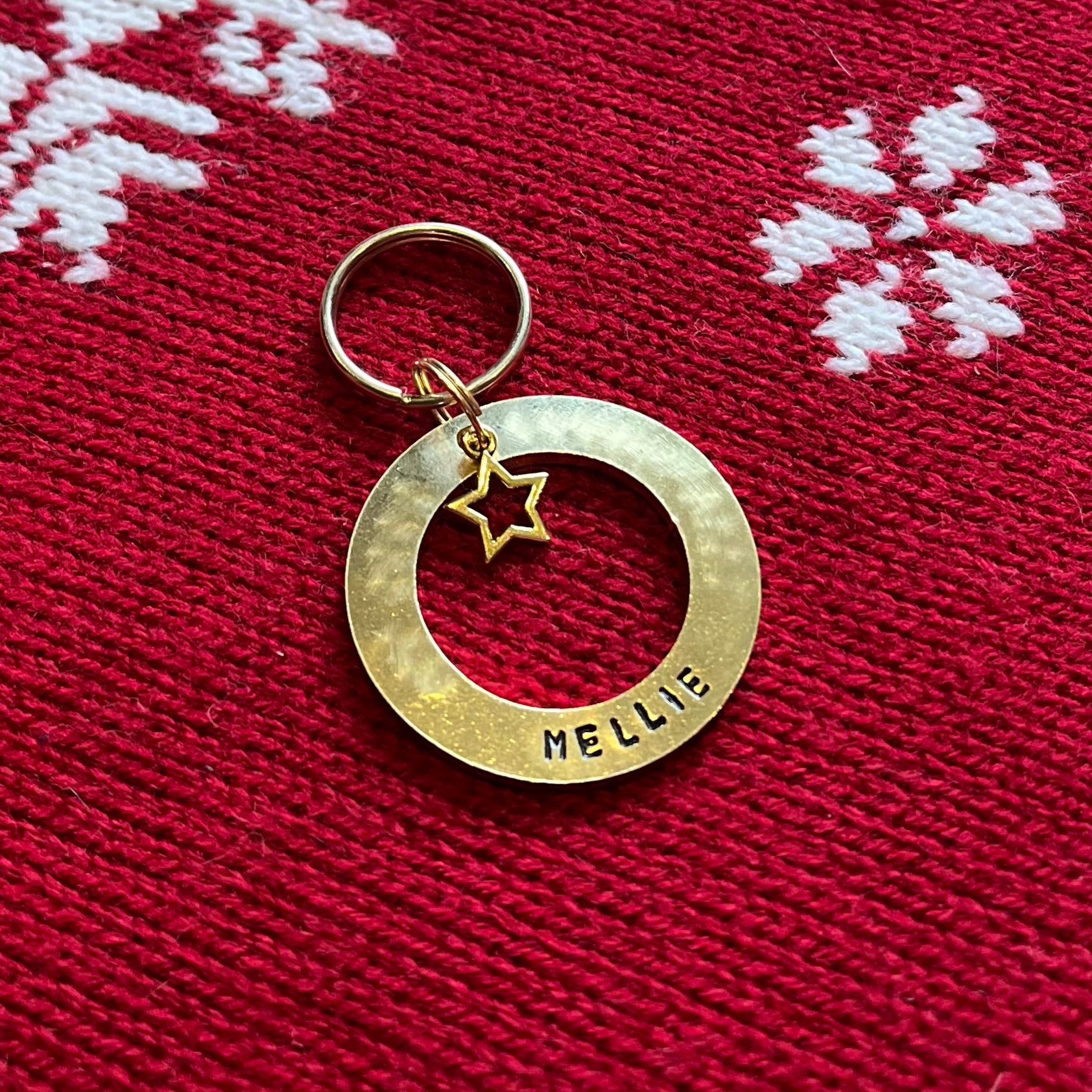 Each design is individually stamped by hand, one letter at a time, using traditional tools. This means no two pieces are ever exactly alike, each tag is truly one of a kind.