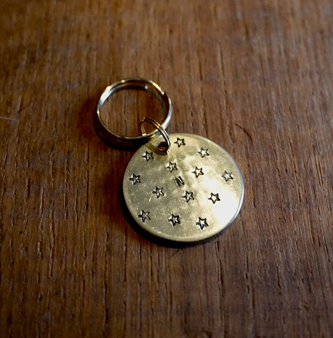 Each design is individually stamped by hand, one letter at a time, using traditional tools. This means no two pieces are ever exactly alike, each tag is truly one of a kind.