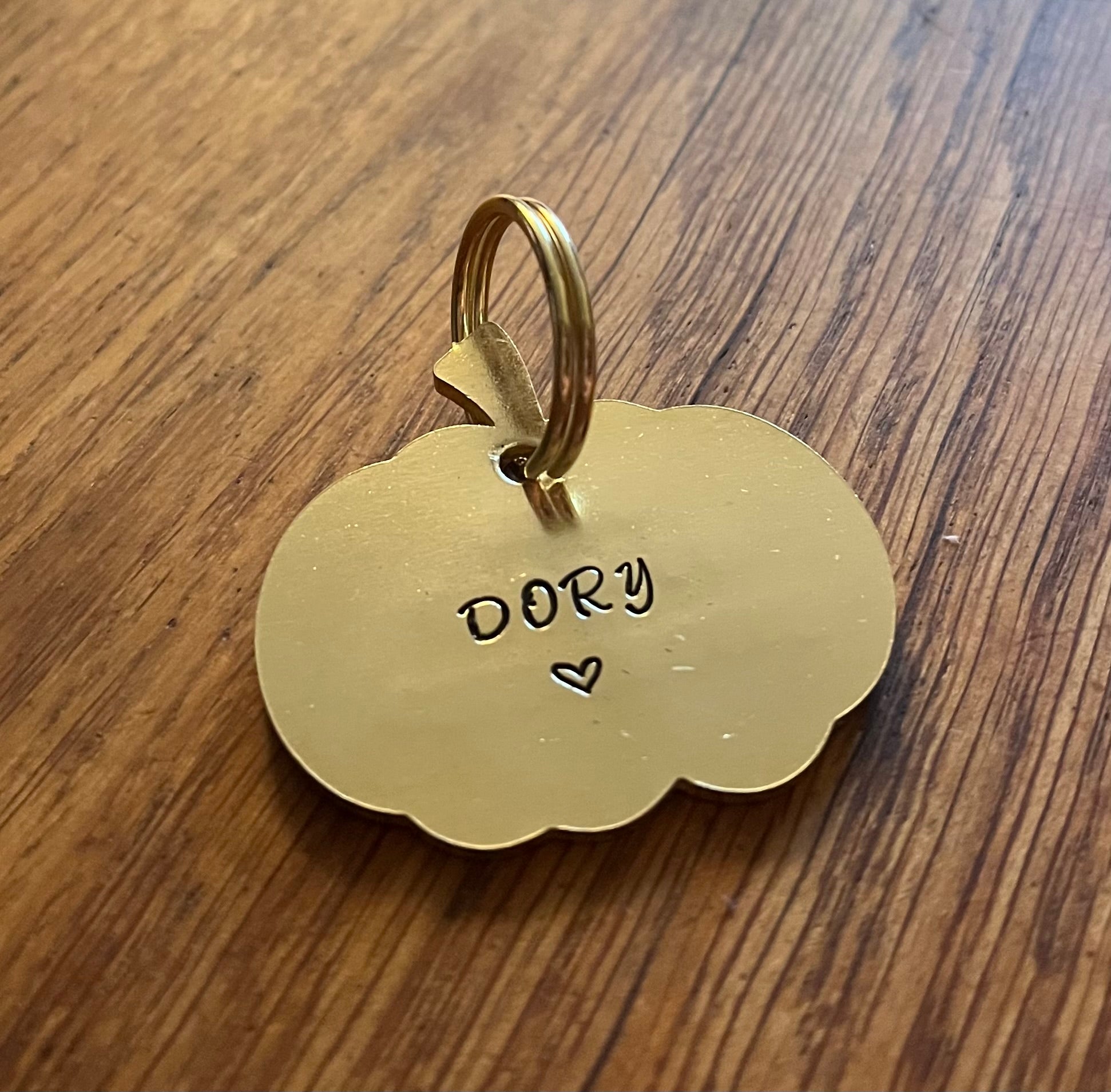 Each design is individually stamped by hand, one letter at a time, using traditional tools. This means no two pieces are ever exactly alike, each tag is truly one of a kind.